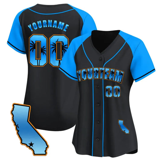 CUSTOM BLACK ALTERNATE CALIFORNIA BEACH BASEBALL JERSEY - EMBROIDERED