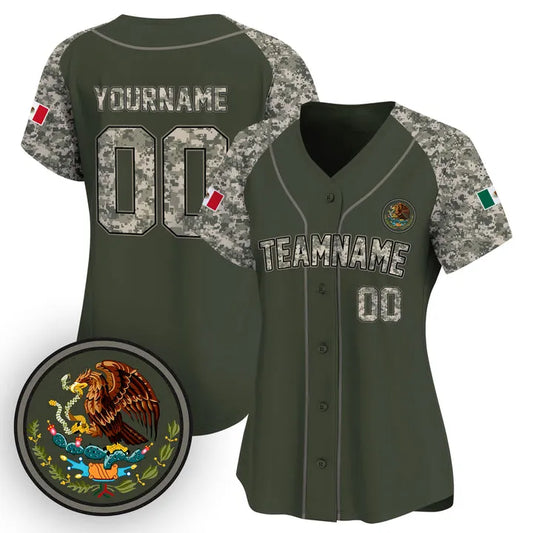 CUSTOM ALTERNATE OLIVE GREEN CAMO - BLACK MEXICO BASEBALL JERSEY - EMBROIDERED