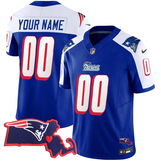 Patriots 1996 Throwback State Patch Vapor Custom Jersey - All Stitched