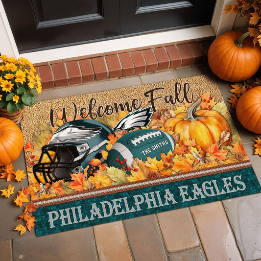 Philadelphia Eagles Doormat Custom Your Family Name And Choose Your Quotes, Sport Doormat, Sport Gifts For Fan
