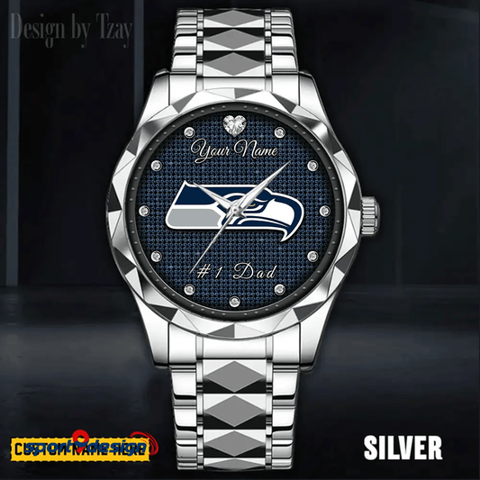 Seattle Seahawks #1 Dad Luxury Diamond Men Watch Father's Day Gift