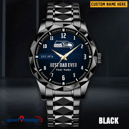 Seattle Seahawks Best Dad Ever Luxury Diamond Men Watch Father's Day Gift