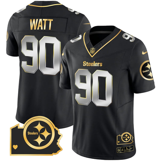 Steelers Home Patch Gold Vapor Jersey - All Stitched