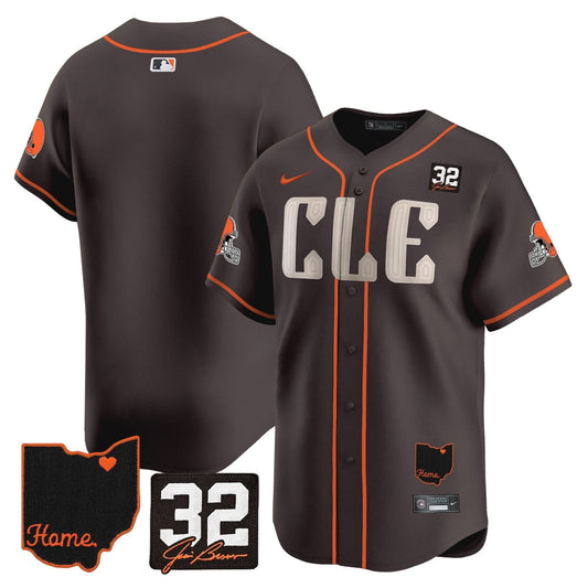 Browns #32 Jim Brown Memorial & Home Patch Jersey V3 - All Stitched