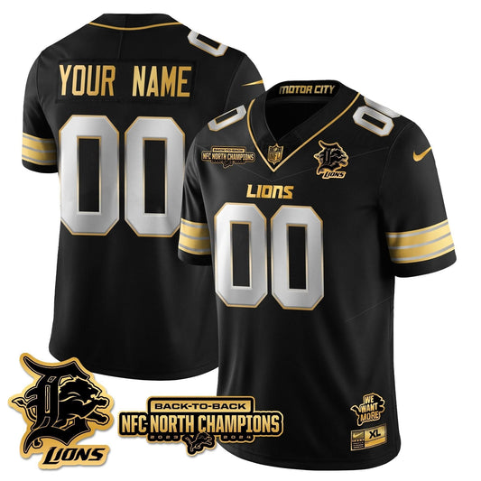 Custom Gender/Name Detroit Lions 2024 NFC North Champions Gold Jersey N1 - All Stitche