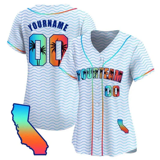 CUSTOM WHITE CALIFORNIA BEACH BASEBALL JERSEY - EMBROIDERED