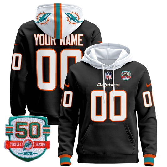 Dolphins 50th 1972 Perfect Season Patch Custom Pullover Hoodie - Printed
