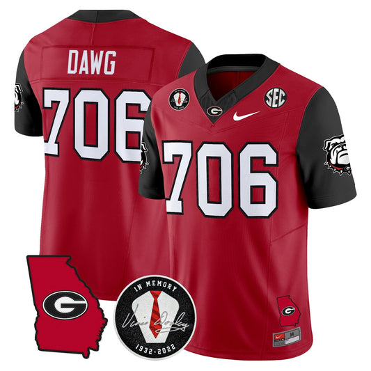 UGA 2025 Georgia Map & Vince Dooley Patch Vapor Limited Jersey - All Stitched