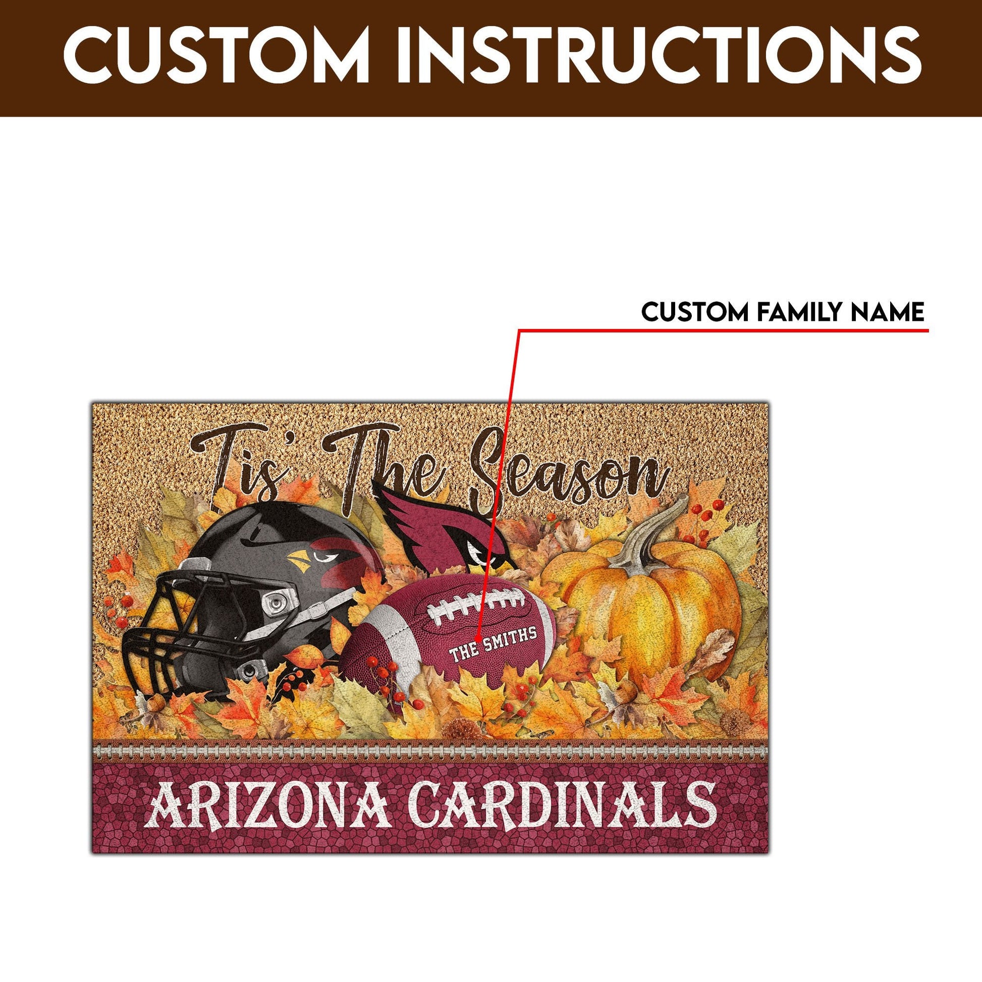 Arizona Cardinals Doormat Custom Your Family Name And Choose Your Quotes, Sport Doormat, Sport Gifts For Fan