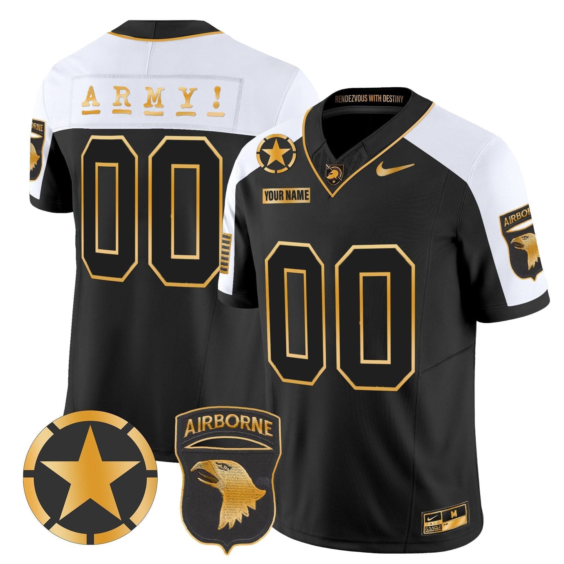 Army Black Knights 101st Airborne Division Patch 2024 Gold Vapor Limited Custom Jersey - All Stitched