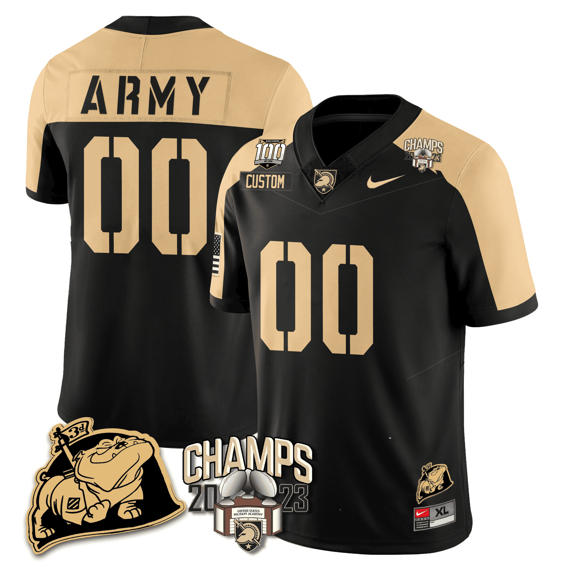 Army Black Knights 2023 CIC Trophy Champion Patch Custom Jersey - All Stitched