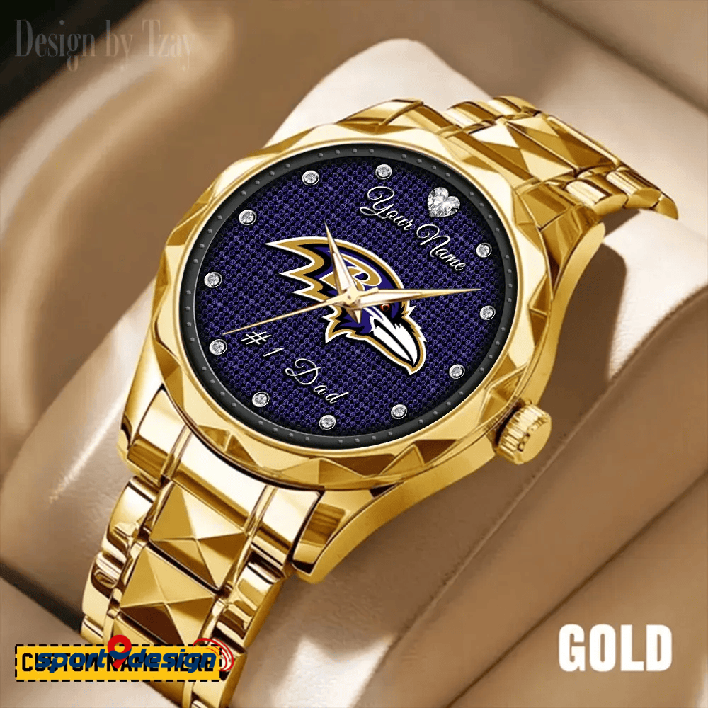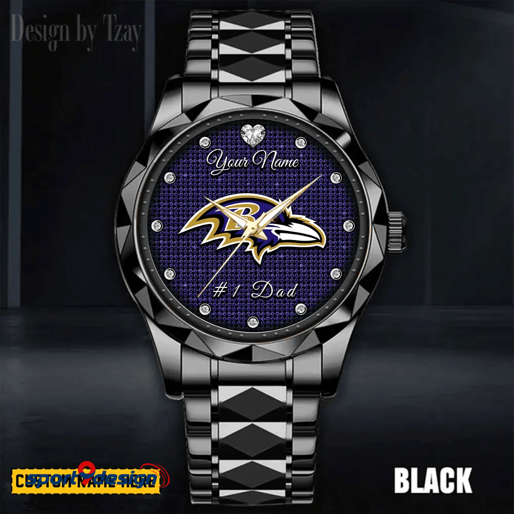 Baltimore Ravens #1 Dad Luxury Diamond Men Watch Father's Day Gift