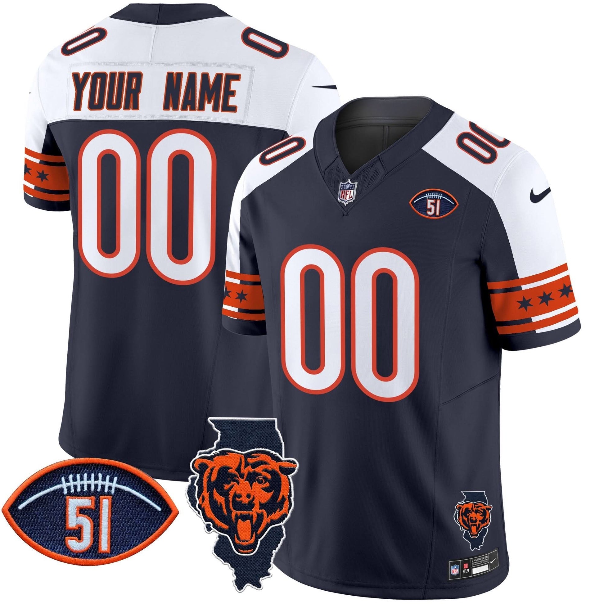 Bears Illinois & Dick Butkus Patch Vapor Limited Custom Jersey - All Stitched