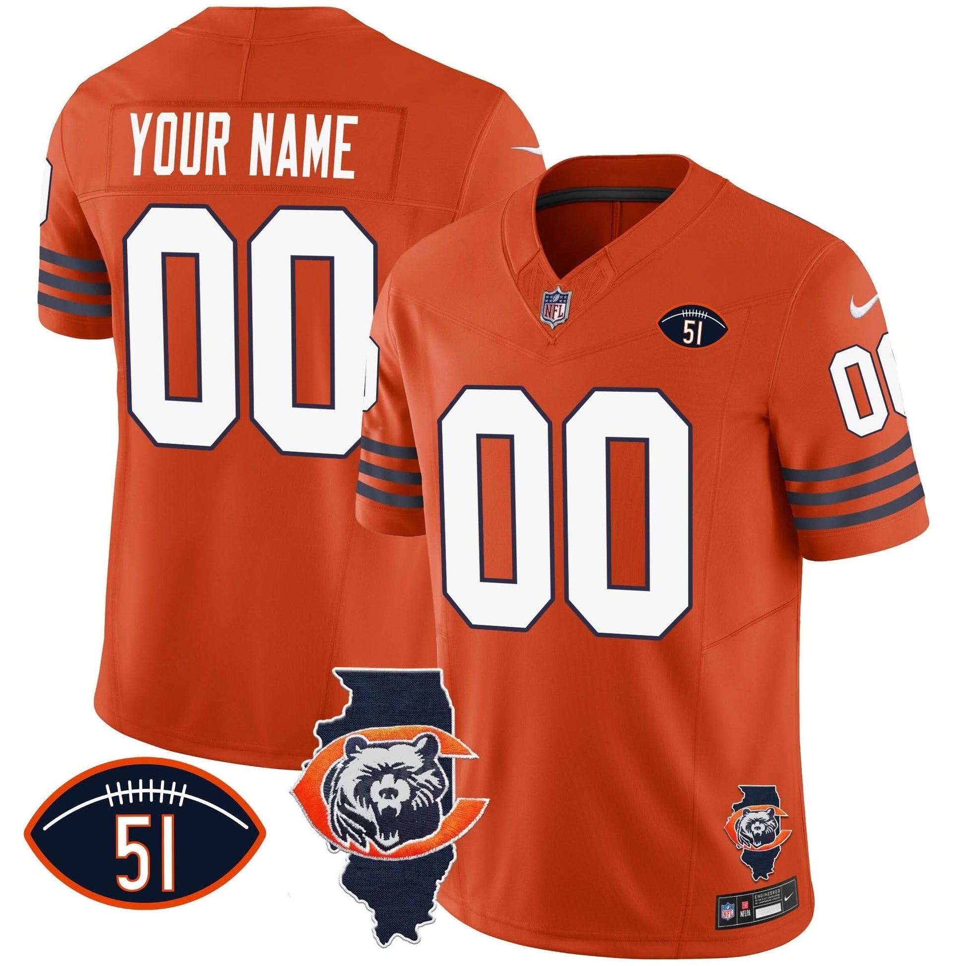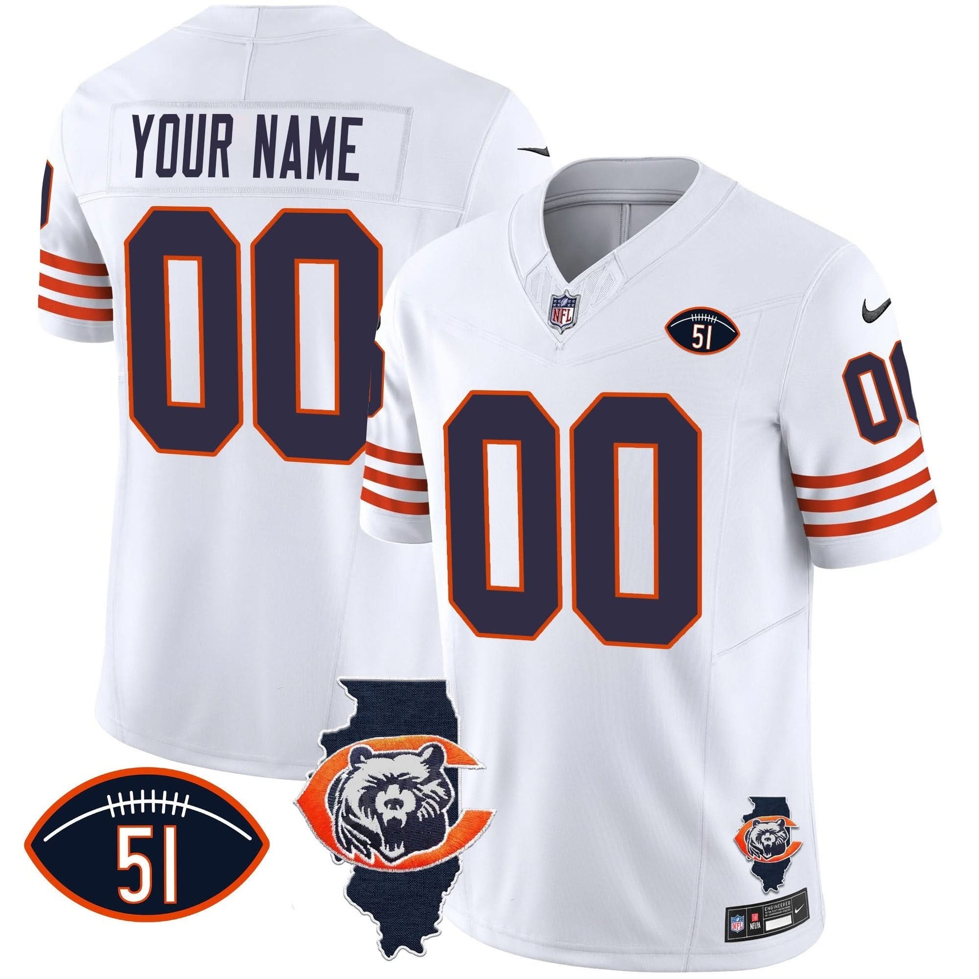 Bears Throwback Illinois Patch Vapor Custom Jersey - All Stitched