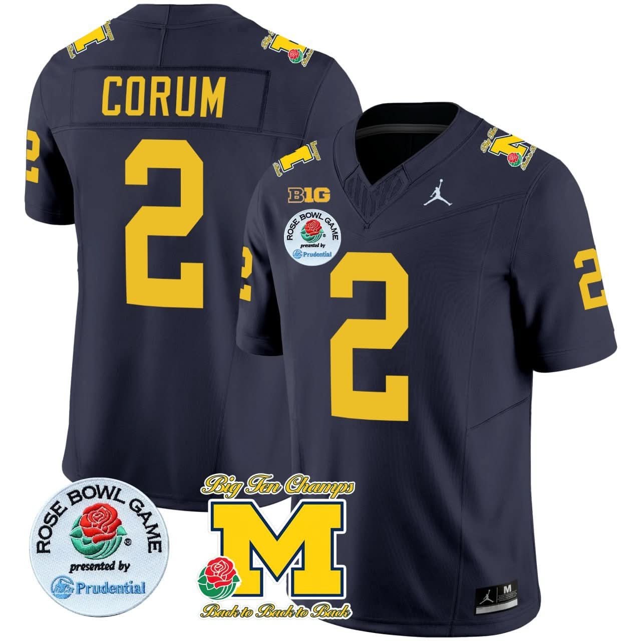 Blake Corum Michigan Wolverines Navy Rose Bowl Patch Jersey - All Stitched