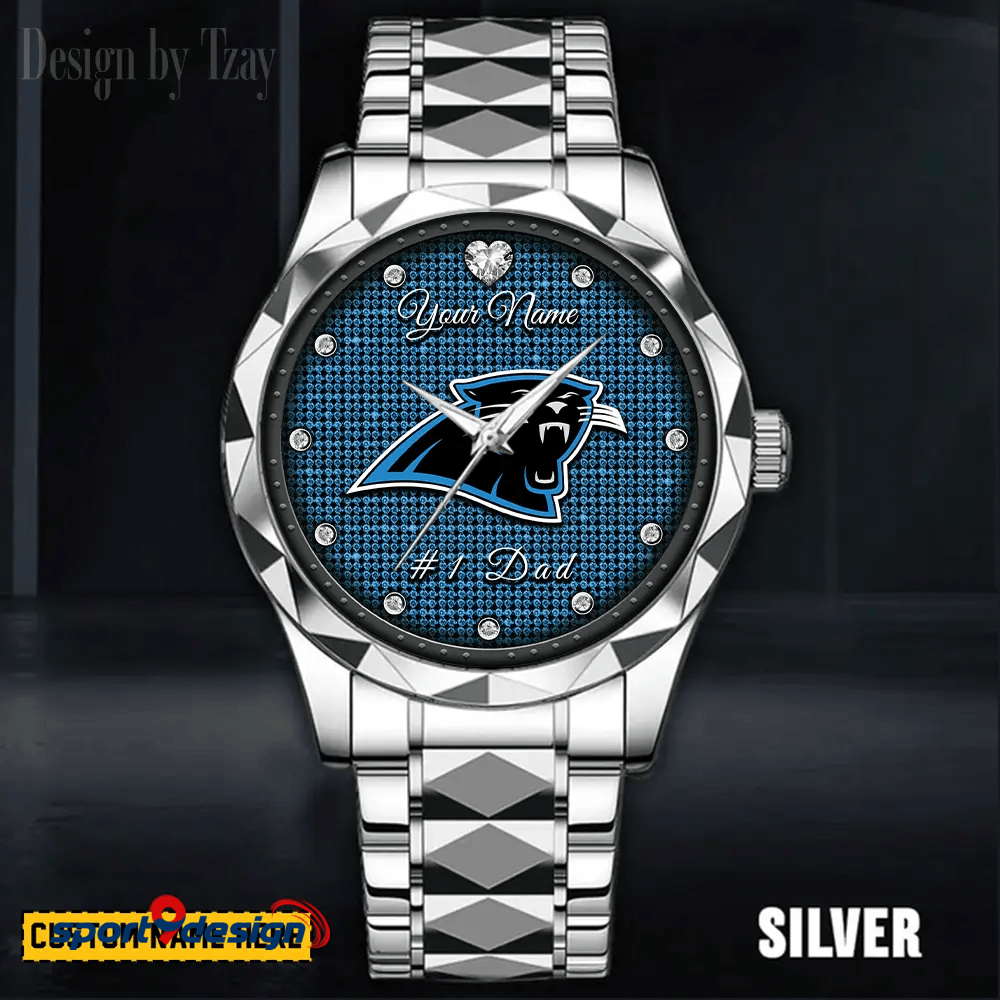 Carolina Panthers #1 Dad Luxury Diamond Men Watch Father's Day Gift