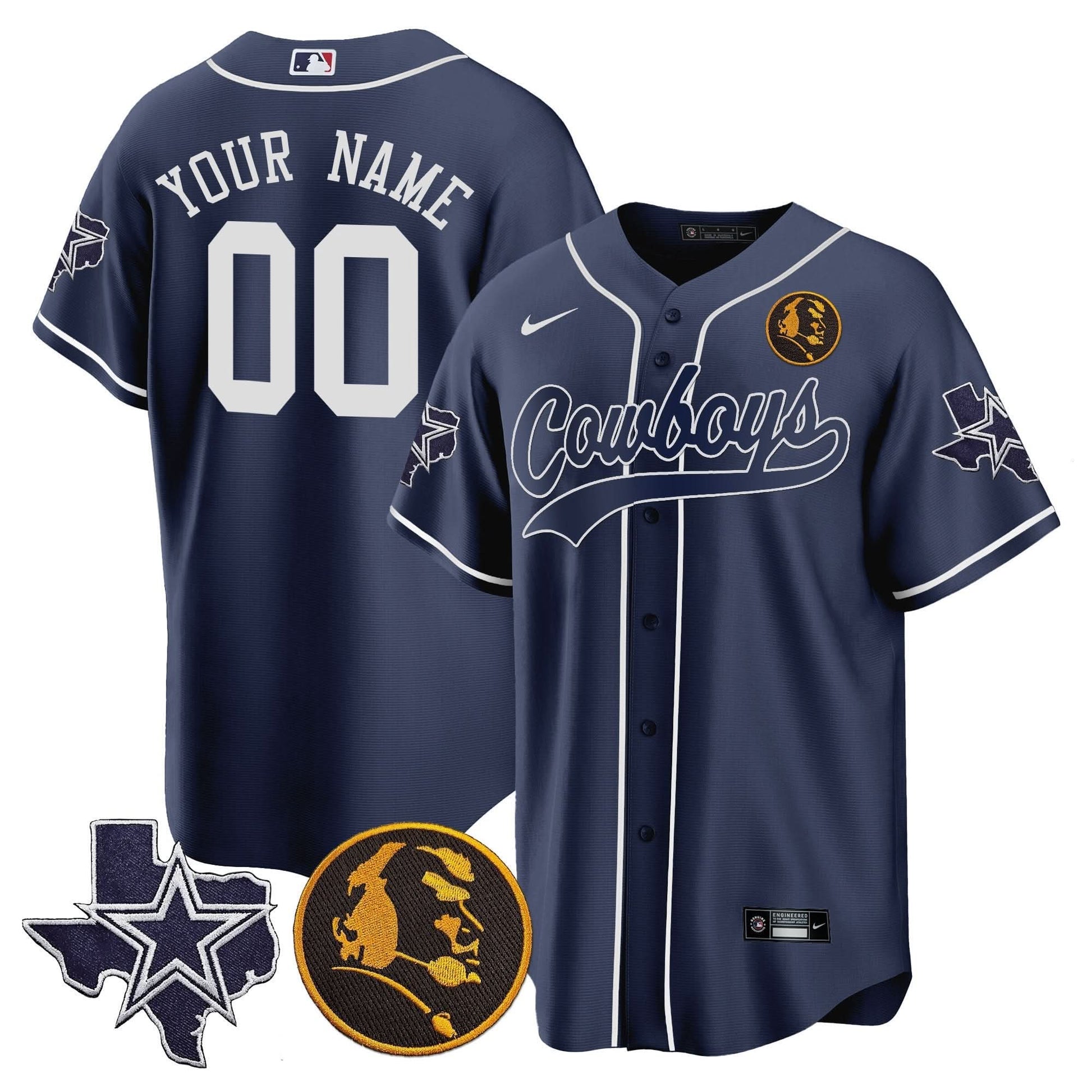 Cowboys Texas & John Madden Patch Baseball Custom Jersey - All Stitched