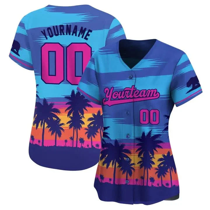 CUSTOM 3D PALM TREES SUN SET CALIFORNIA BASEBALL JERSEY - PRINTED