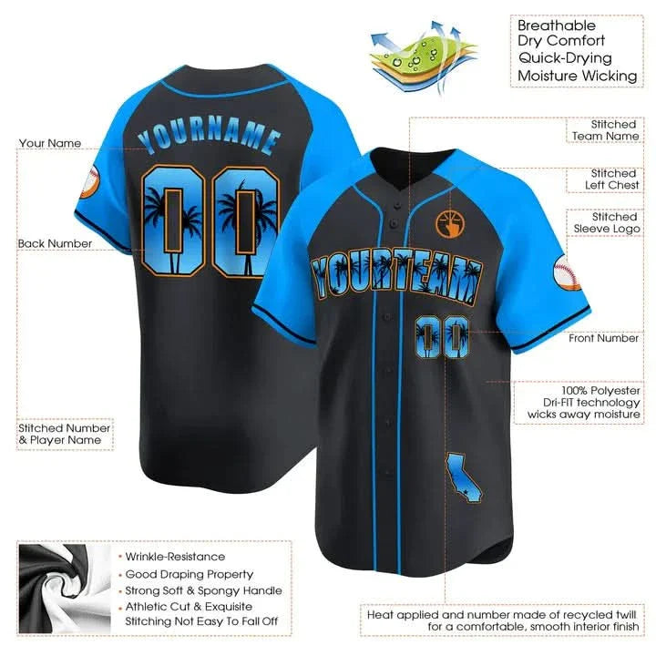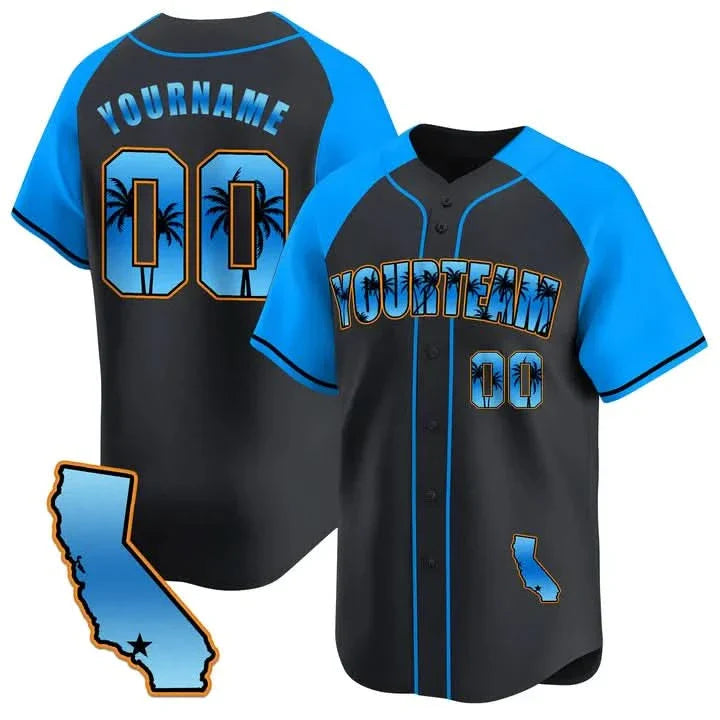 CUSTOM ALTERNATE BLUE CALIFORNIA BEACH BASEBALL JERSEY - EMBROIDERED