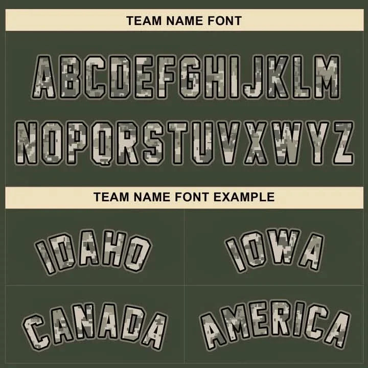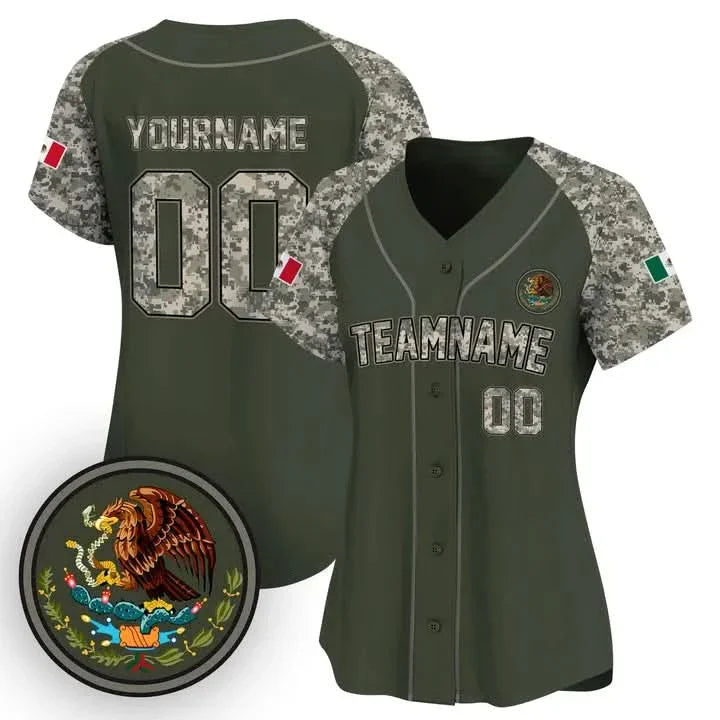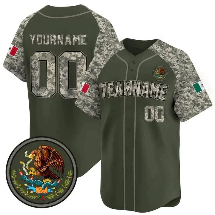 CUSTOM ALTERNATE OLIVE GREEN CAMO - BLACK MEXICO BASEBALL JERSEY - EMBROIDERED