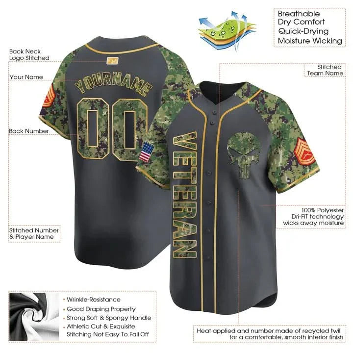 CUSTOM BLACK ALTERNATE CAMO VETERAN BASEBALL JERSEY - EMBROIDERED