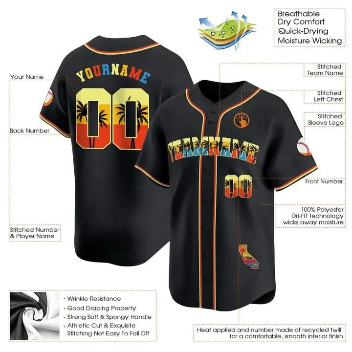 CUSTOM BLACK CALIFORNIA BASEBALL JERSEY - EMBROIDERED