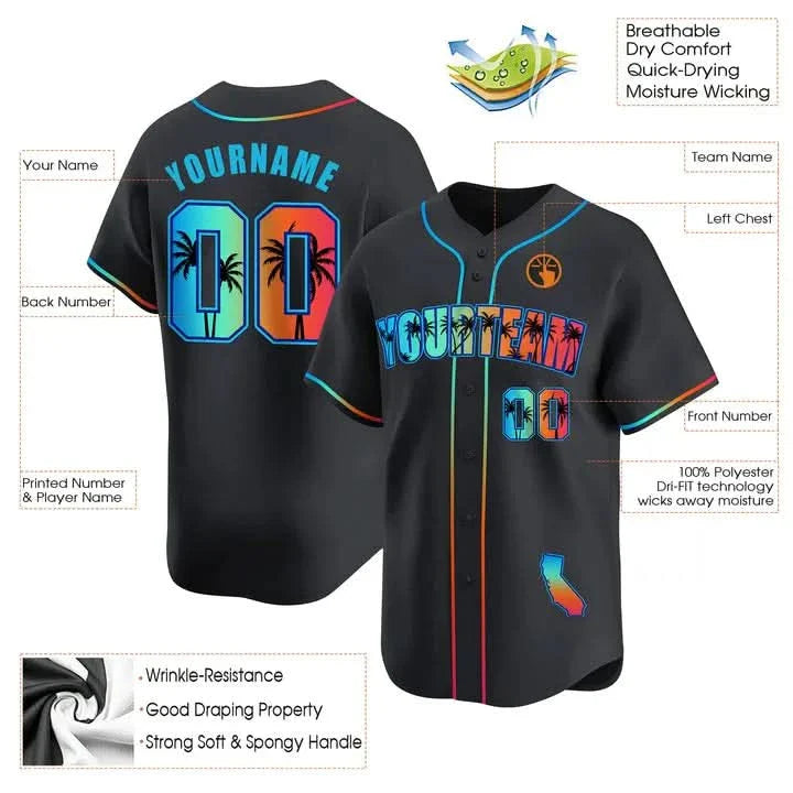 CUSTOM BLACK CALIFORNIA BEACH BASEBALL JERSEY - EMBROIDERED