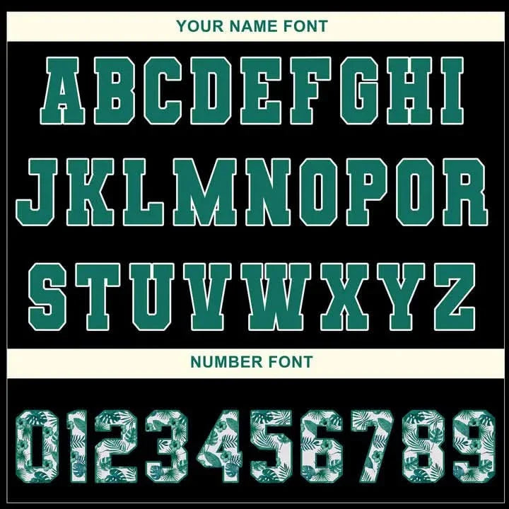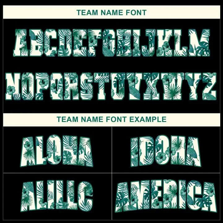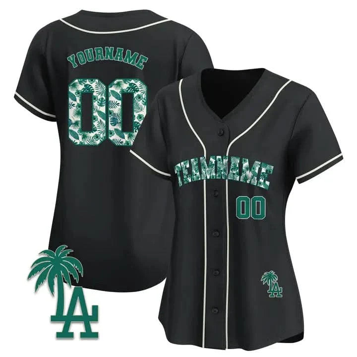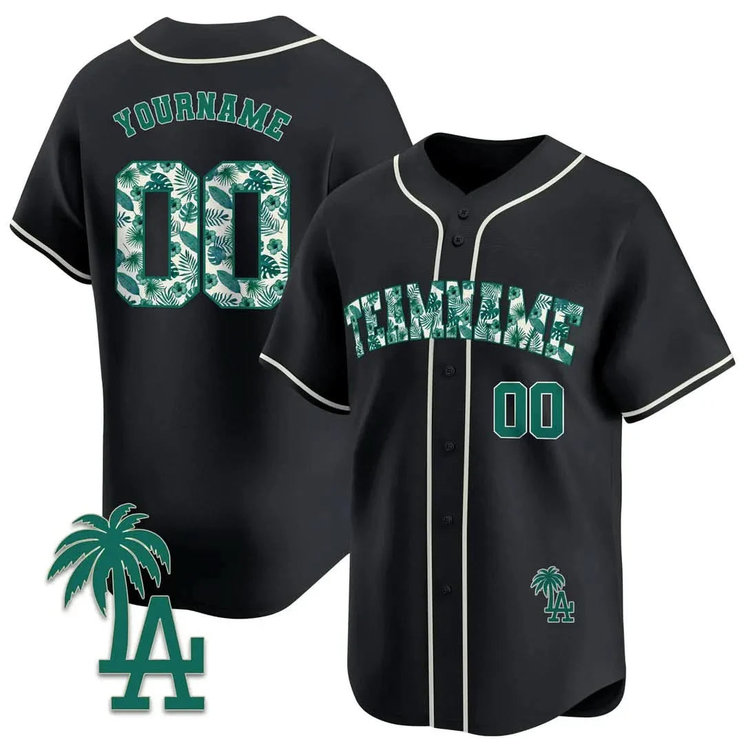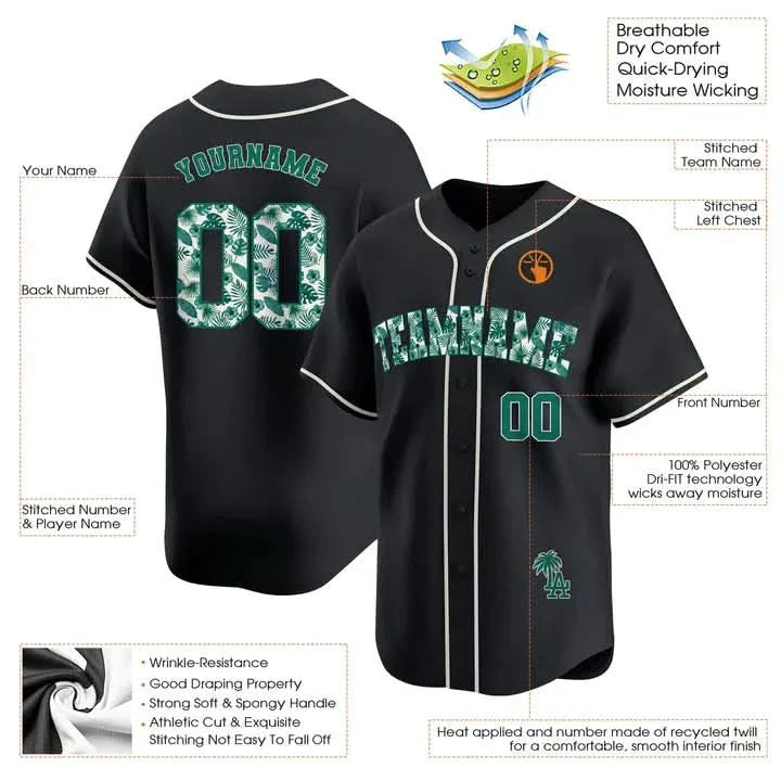 CUSTOM BLACK GREEN TROPICAL FLORAL PATTERN BASEBALL JERSEY - EMBROIDERED