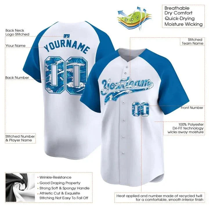 CUSTOM BLUE ALTERNATE-BLUE BEACH PARTTEN BASEBALL JERSEY - EMBROIDERED