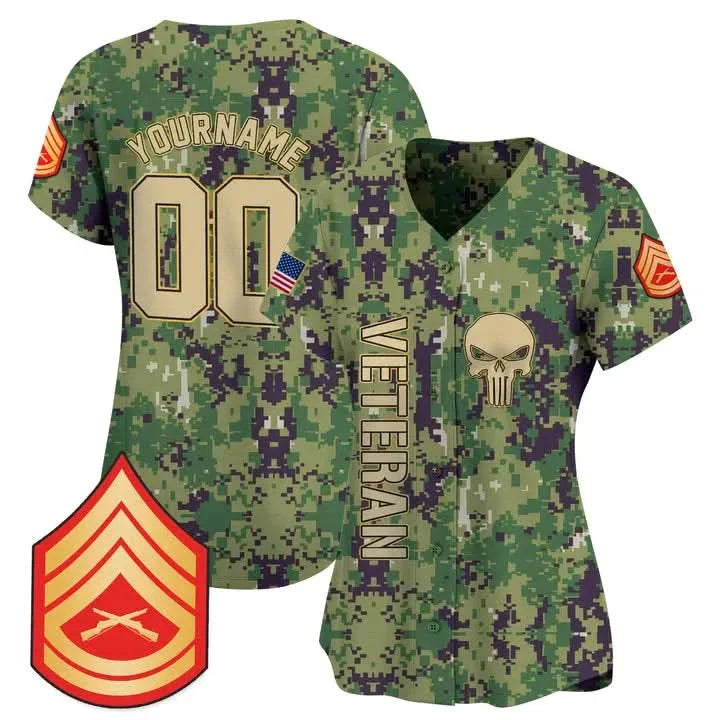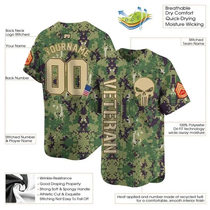 CUSTOM CAMO CREAM VETERAN BASEBALL JERSEY - EMBROIDERED