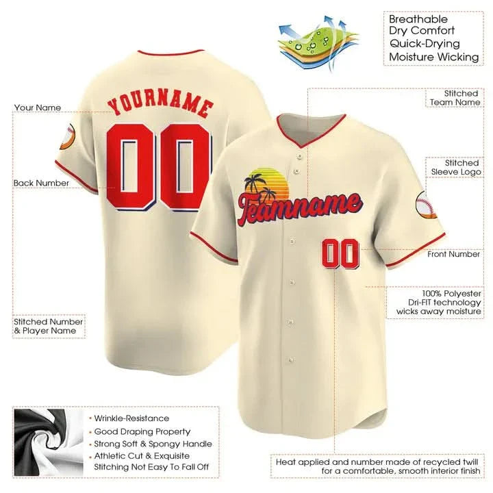 CUSTOM CREAM RED CALIFORNIA BASEBALL JERSEY - EMBROIDERED