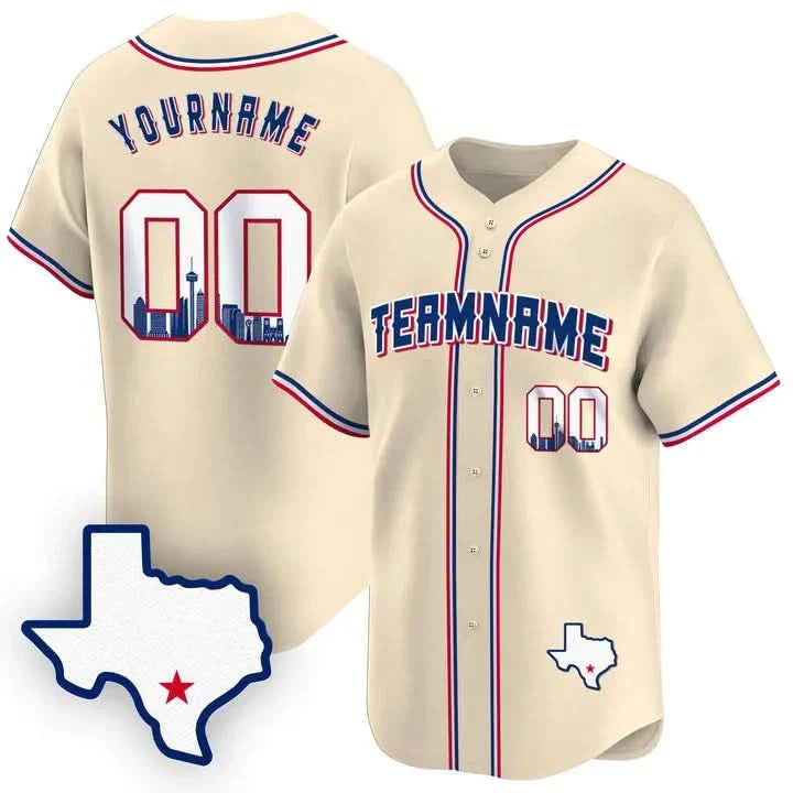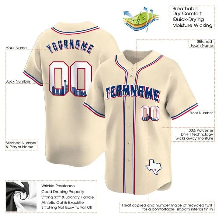 CUSTOM CREAM ROYAL SAN ANTONIO TEXAS PATTERN BASEBALL JERSEY - EMBROIDERED
