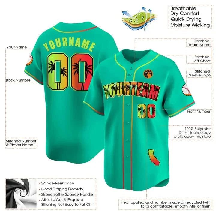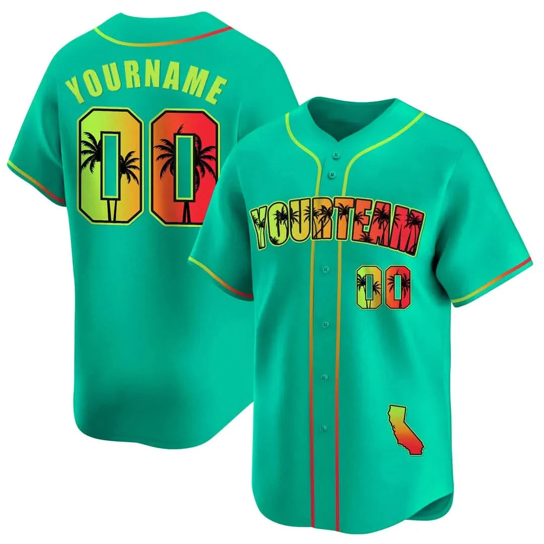 CUSTOM CYAN GREEN CALIFORNIA BEACH BASEBALL JERSEY - EMBROIDERED