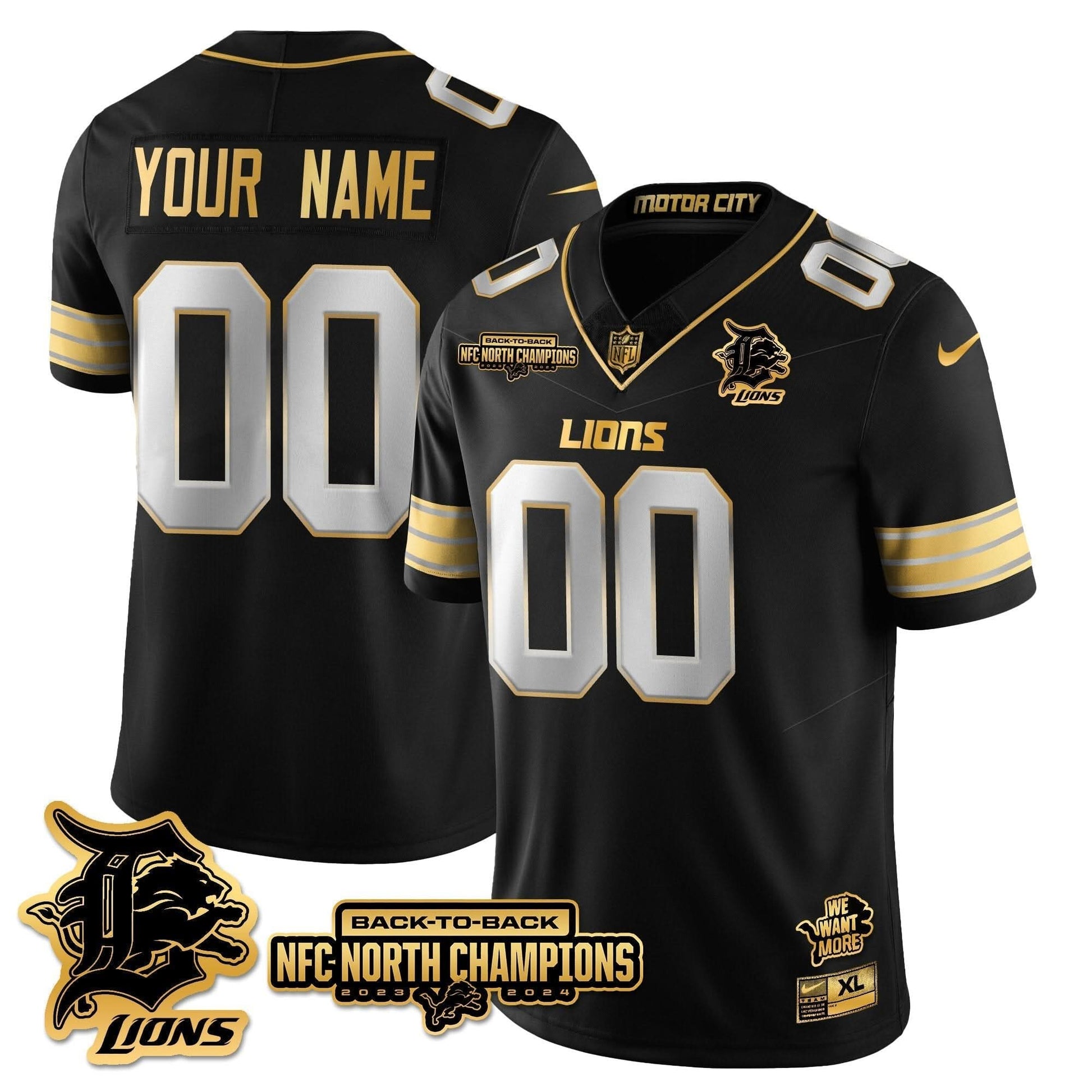 Custom Gender/Name Detroit Lions 2024 NFC North Champions Gold Jersey N3 - All Stitched