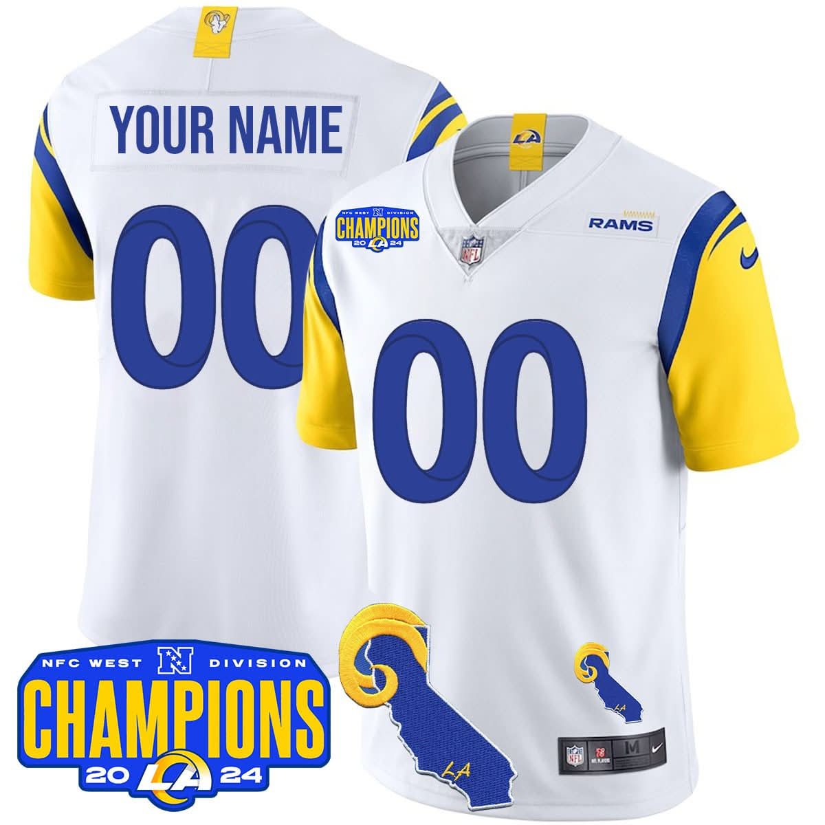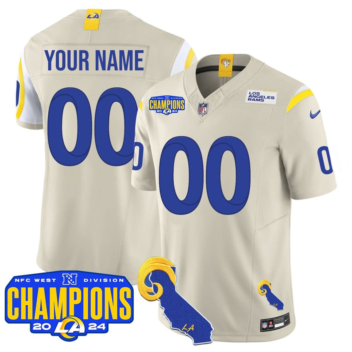 Custom Gender/Name Los Angeles Rams 2024 NFC West Division Champions Jersey - All Stitched