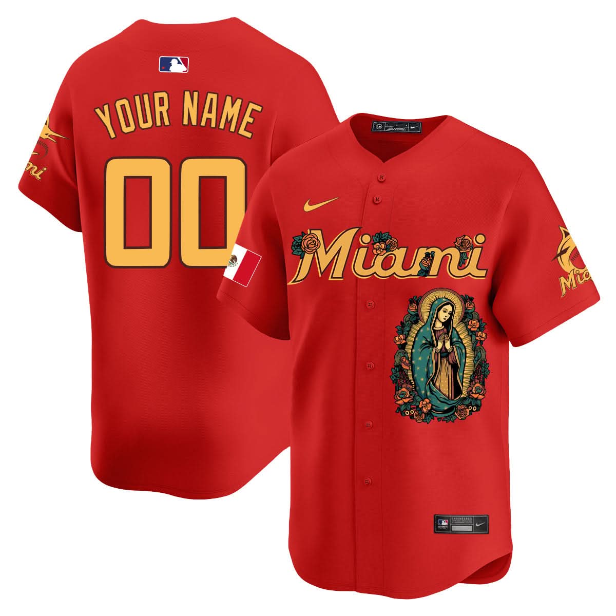 Custom Marlins Mexico Guadalupe Vapor Premier Limited Jersey - Printed