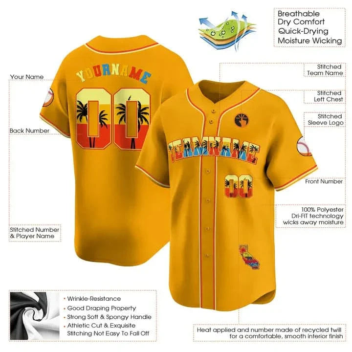 CUSTOM GOLD CALIFORNIA BASEBALL JERSEY - EMBROIDERED