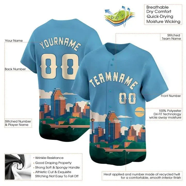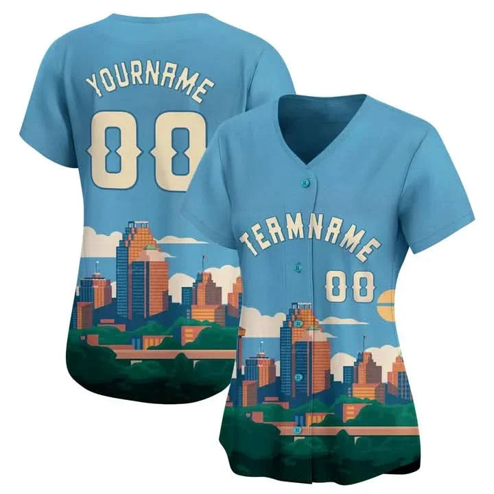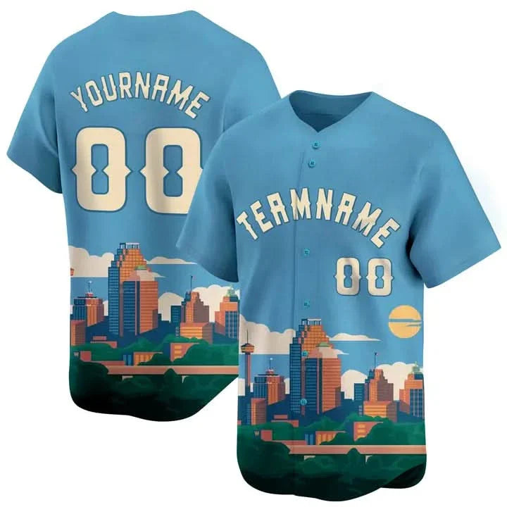 CUSTOM LIGHT BLUE WHITE 3D SAN ANTONIO CITY TEXAS PATTERN BASEBALL JERSEY - PRINTED