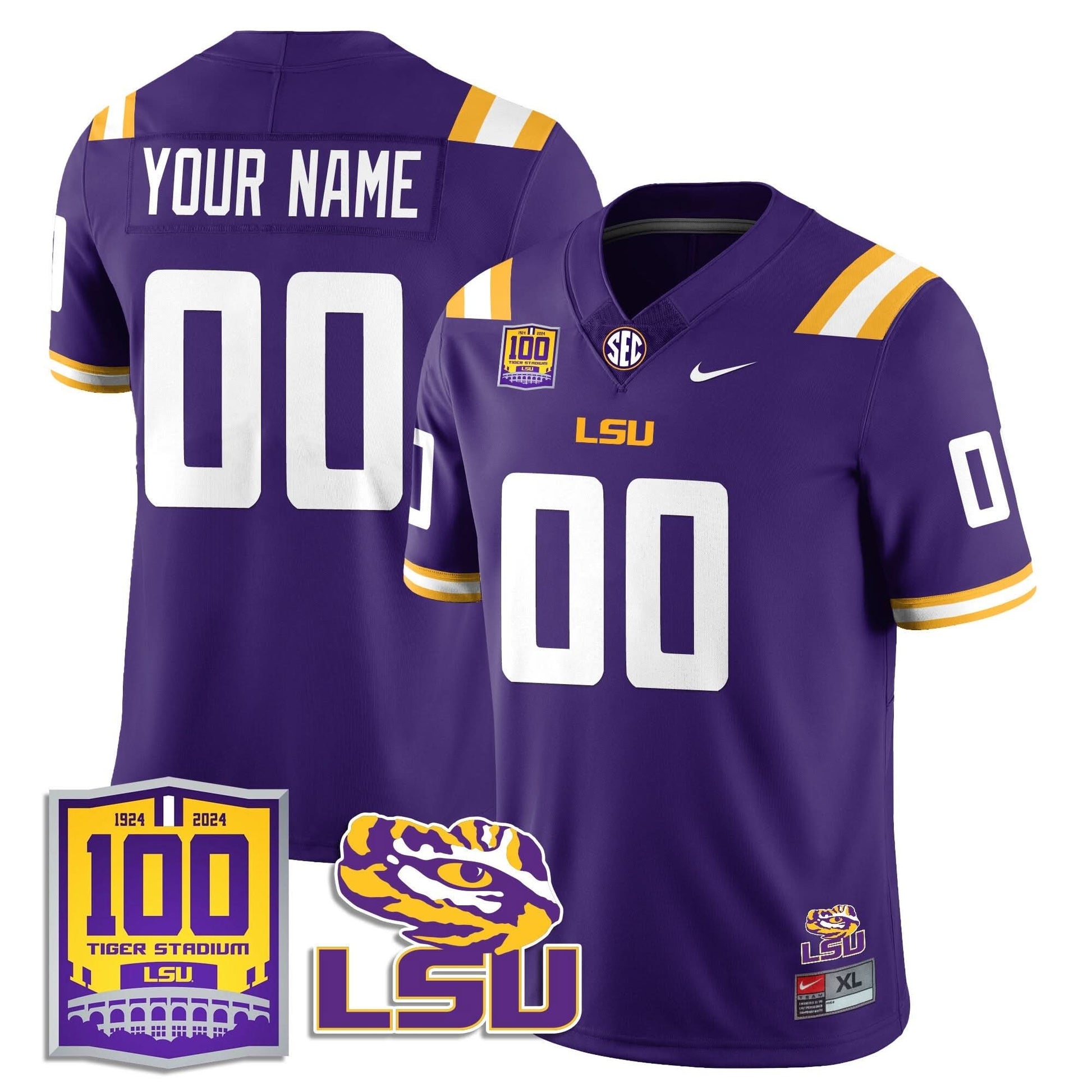 Custom LSU Football 2024 Vapor Jersey - 100th Tigers Stadium - All Stitched