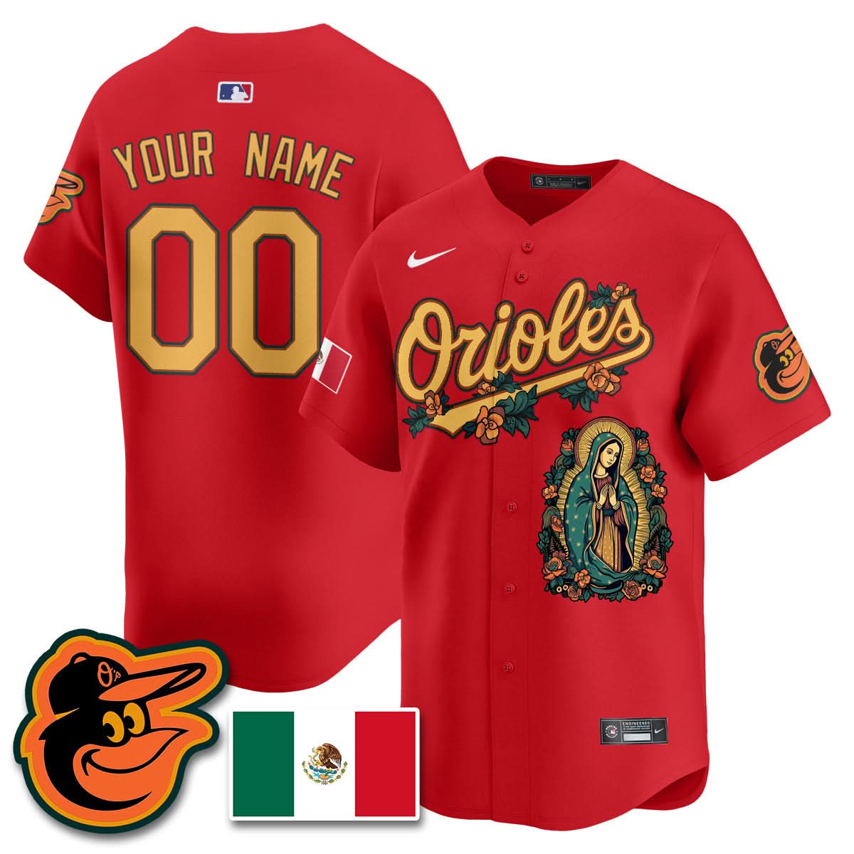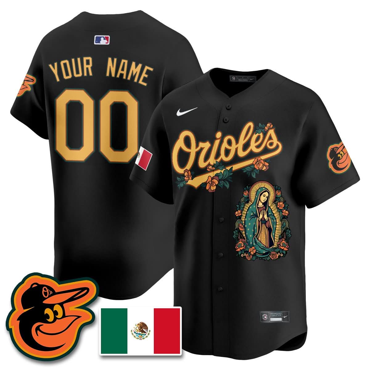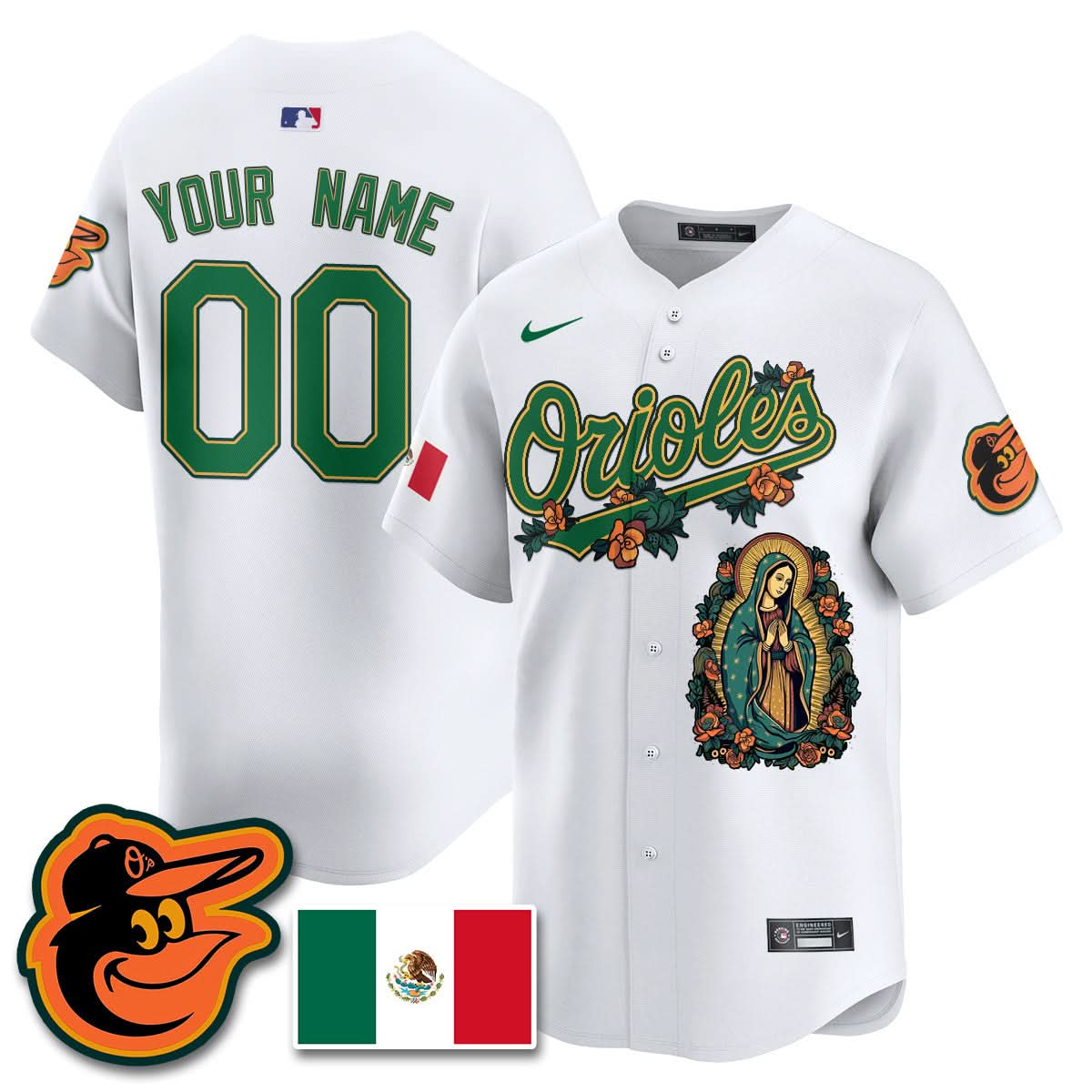 Custom Orioles Mexico Guadalupe Vapor Premier Limited Jersey - Printed