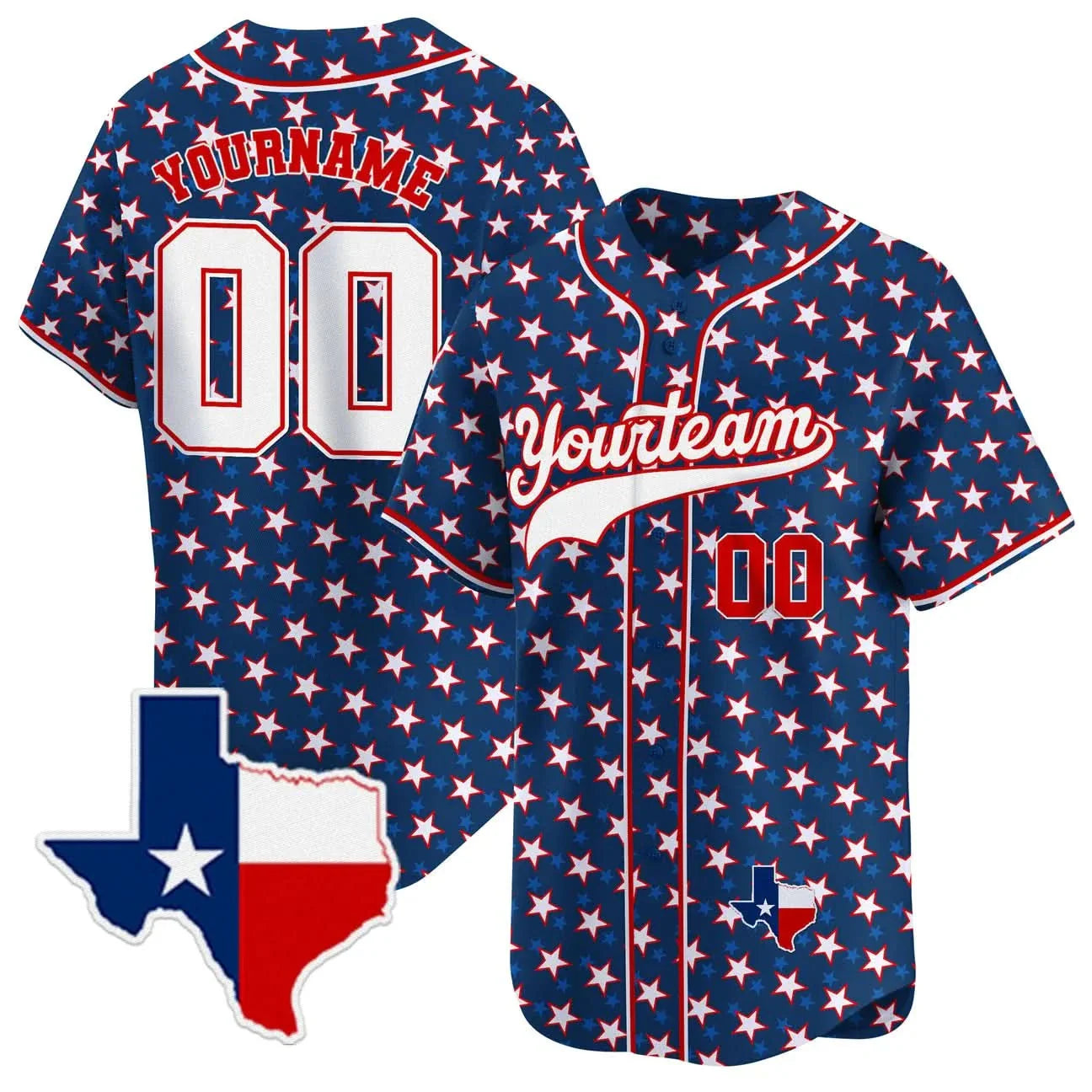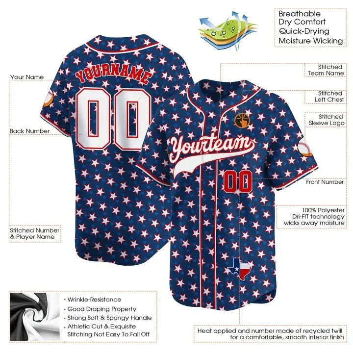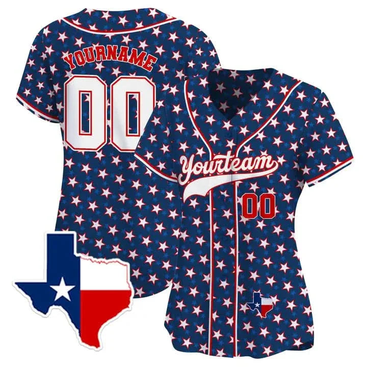 CUSTOM NAVY STAR PATTERN TEXAS MAP BASEBALL JERSEY - PRINTED