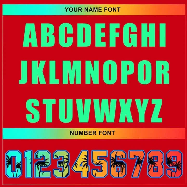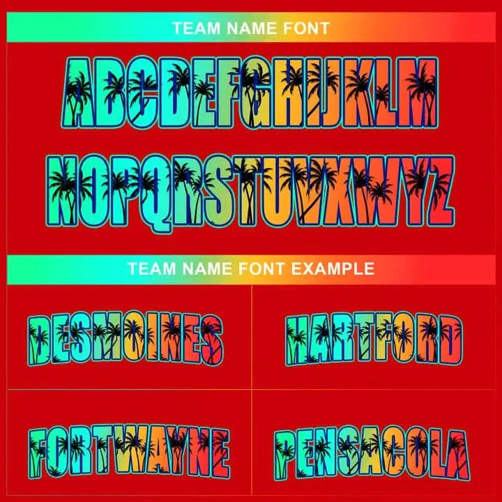 CUSTOM RED GREEN CALIFORNIA BEACH BASEBALL JERSEY - EMBROIDERED
