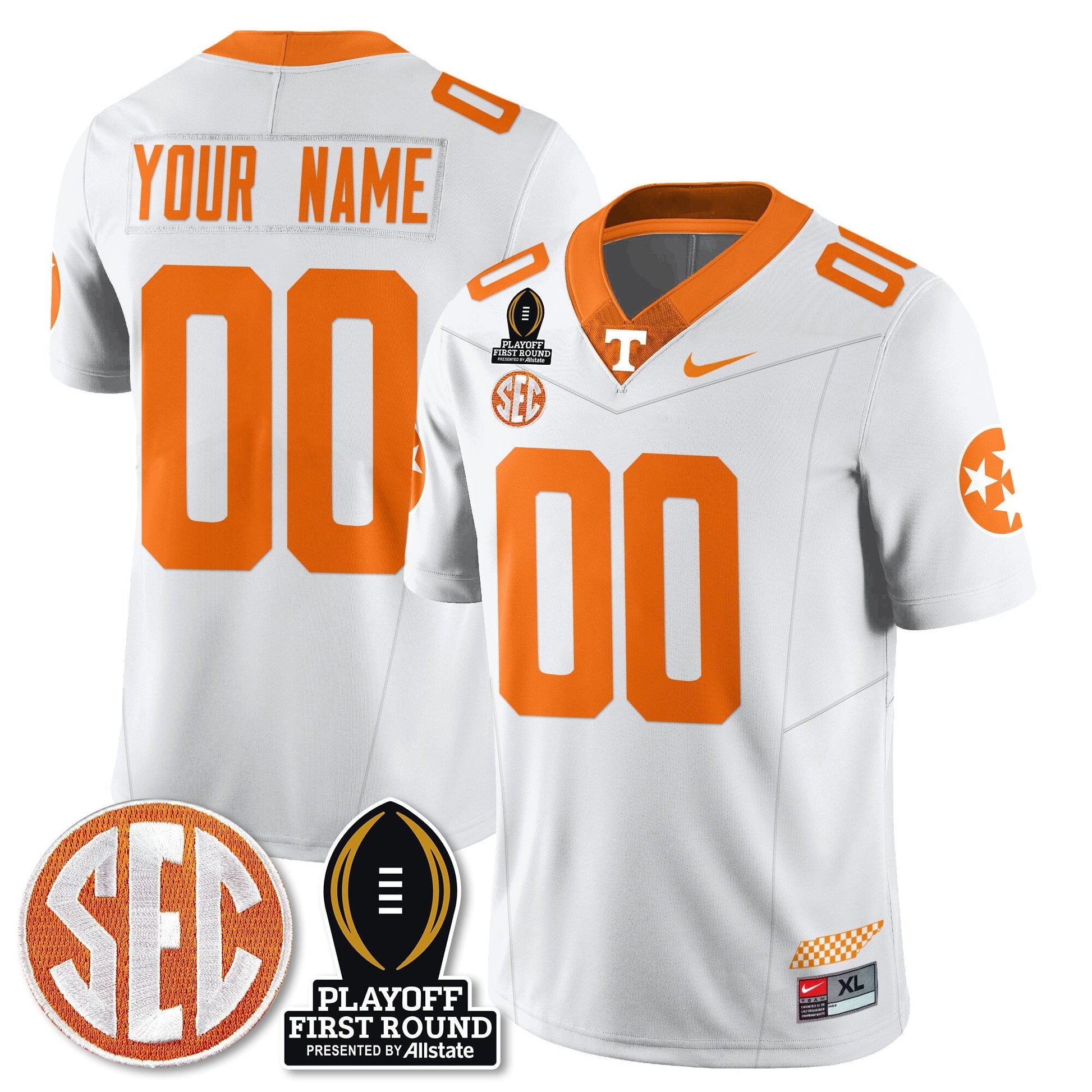 Custom TENN Football Jersey - Playoff First Round Patch - All Stitched