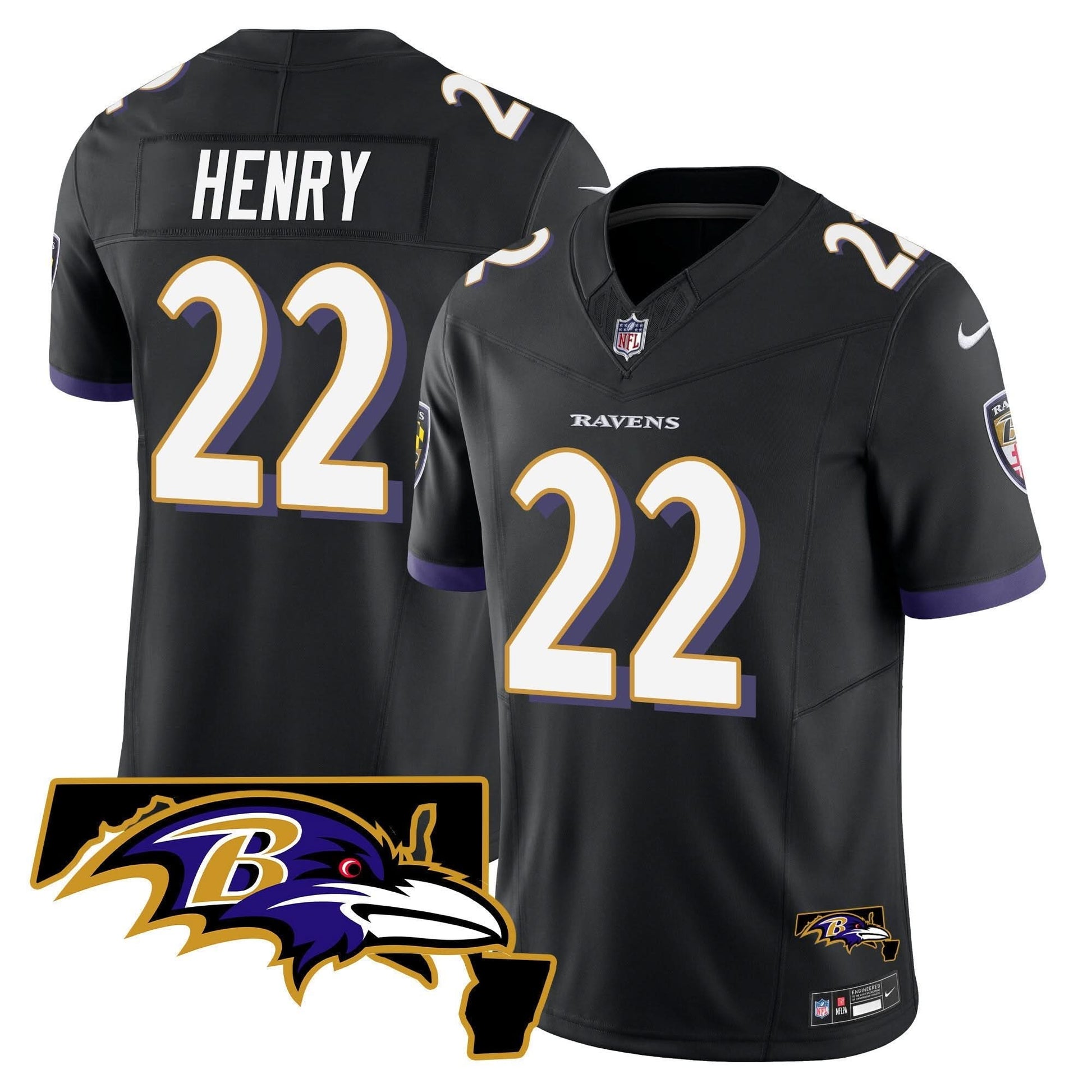 Derrick Henry Ravens Maryland Patch Vapor Limited Jersey - All Stitched