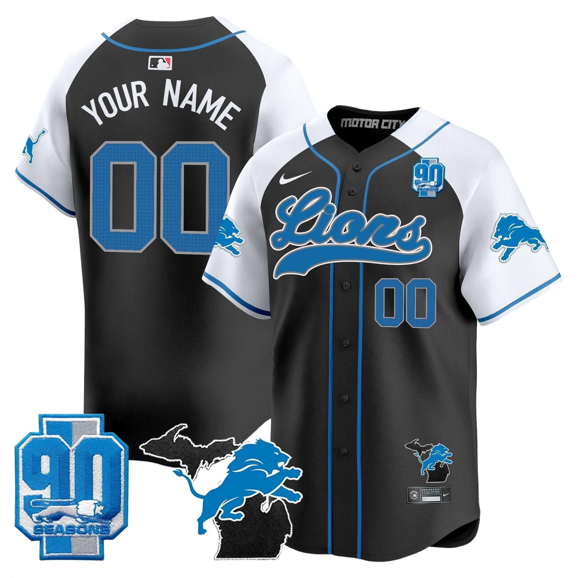 Detroit Lions 2024 Michigan & 90th Season Patch Baseball Custom Jersey - All Stitched