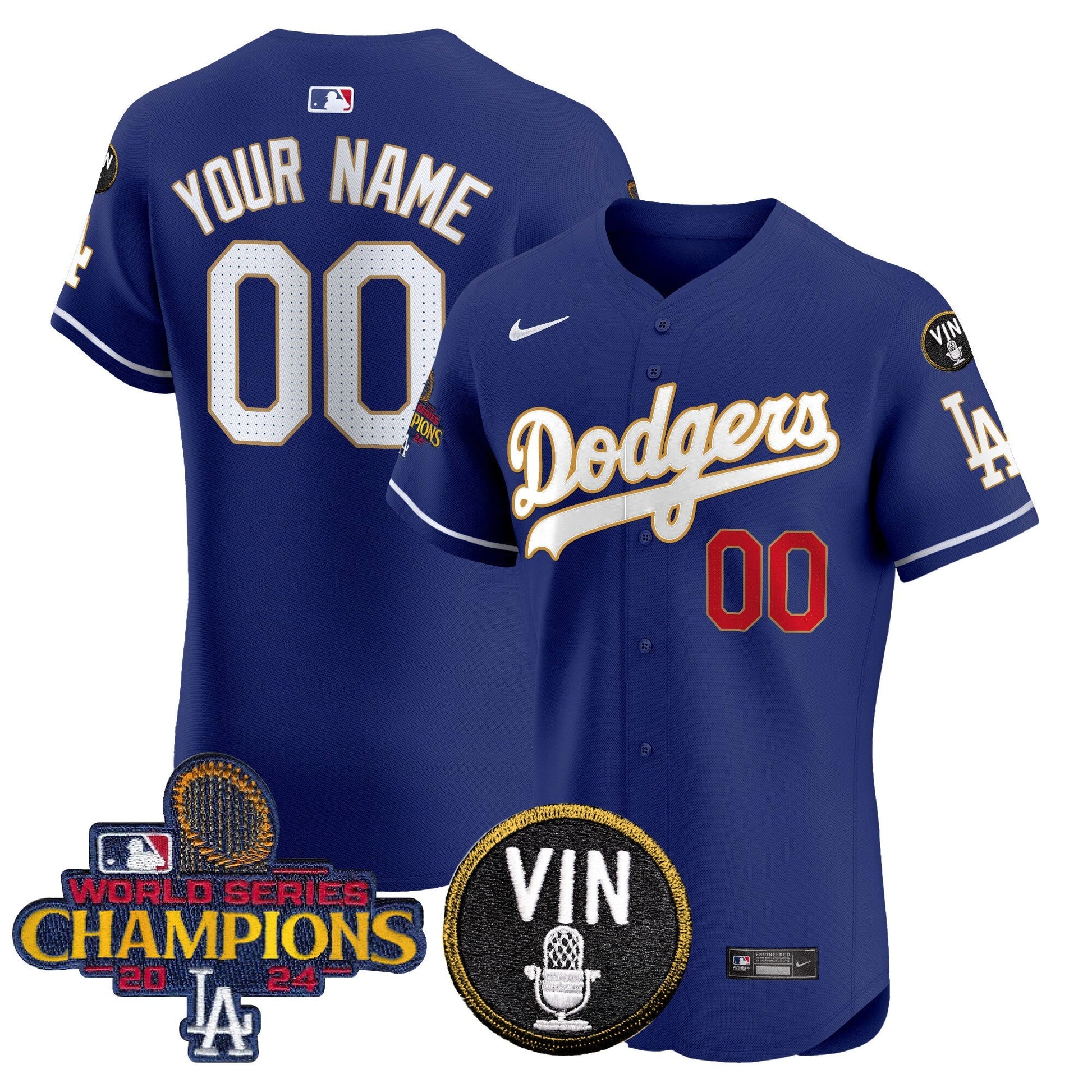 Dodgers 2024 World Series Champions Gold Trim Vapor Premier Elite Custom Jersey - All Stitched