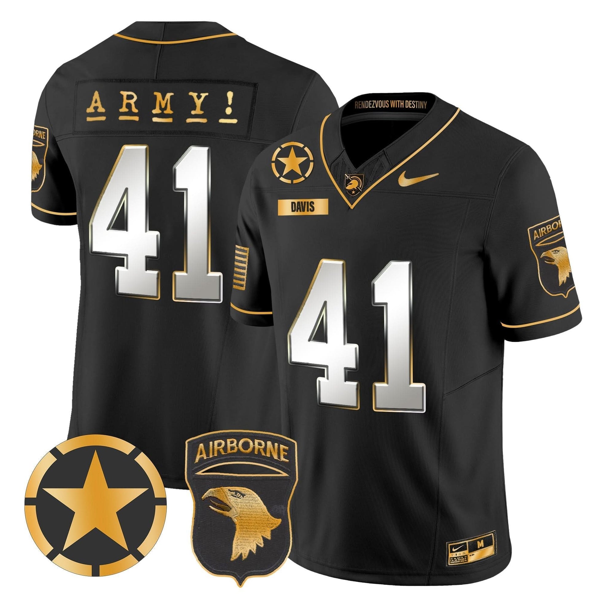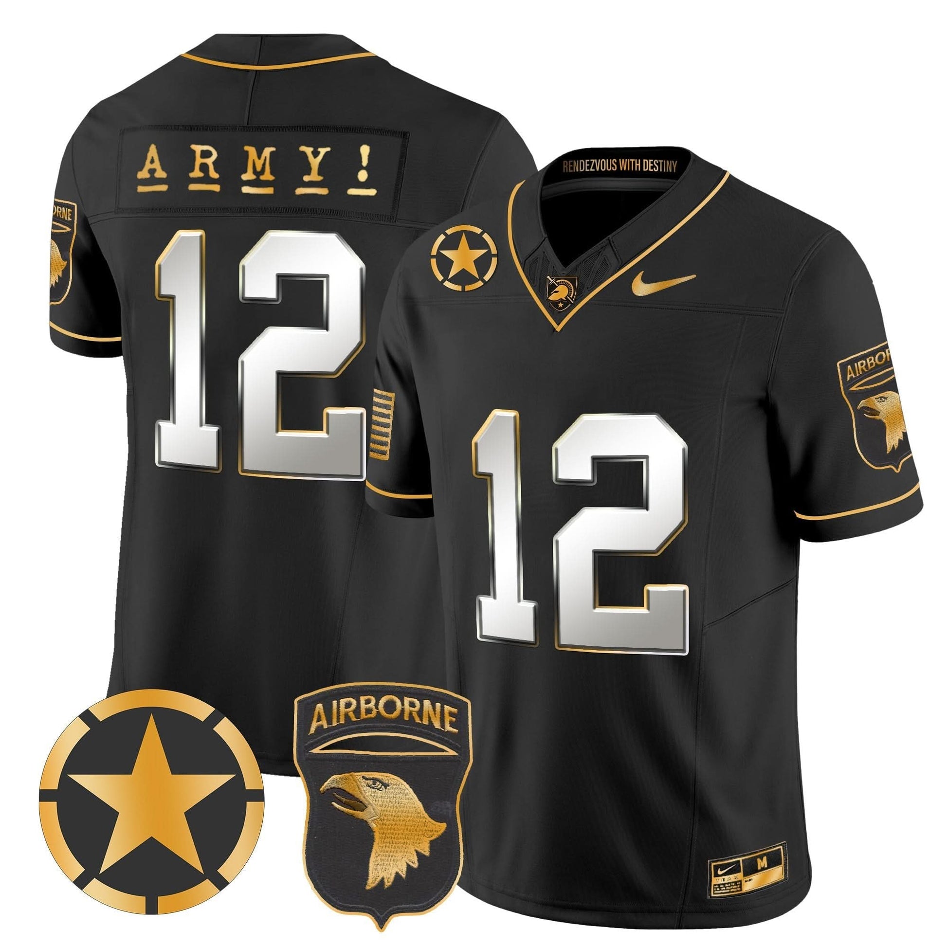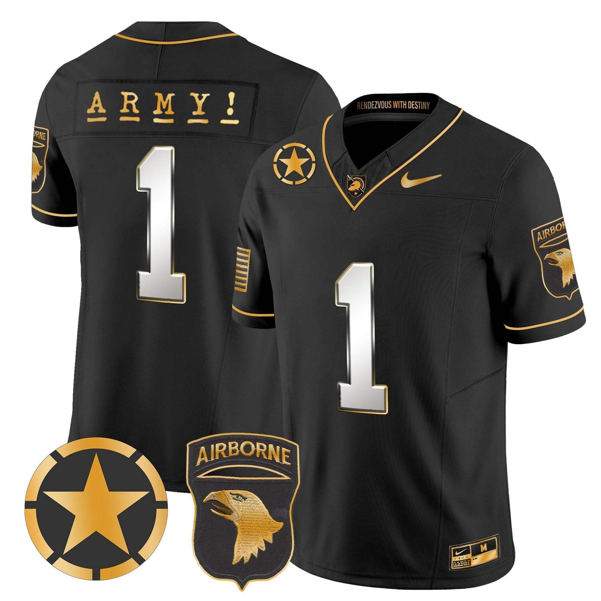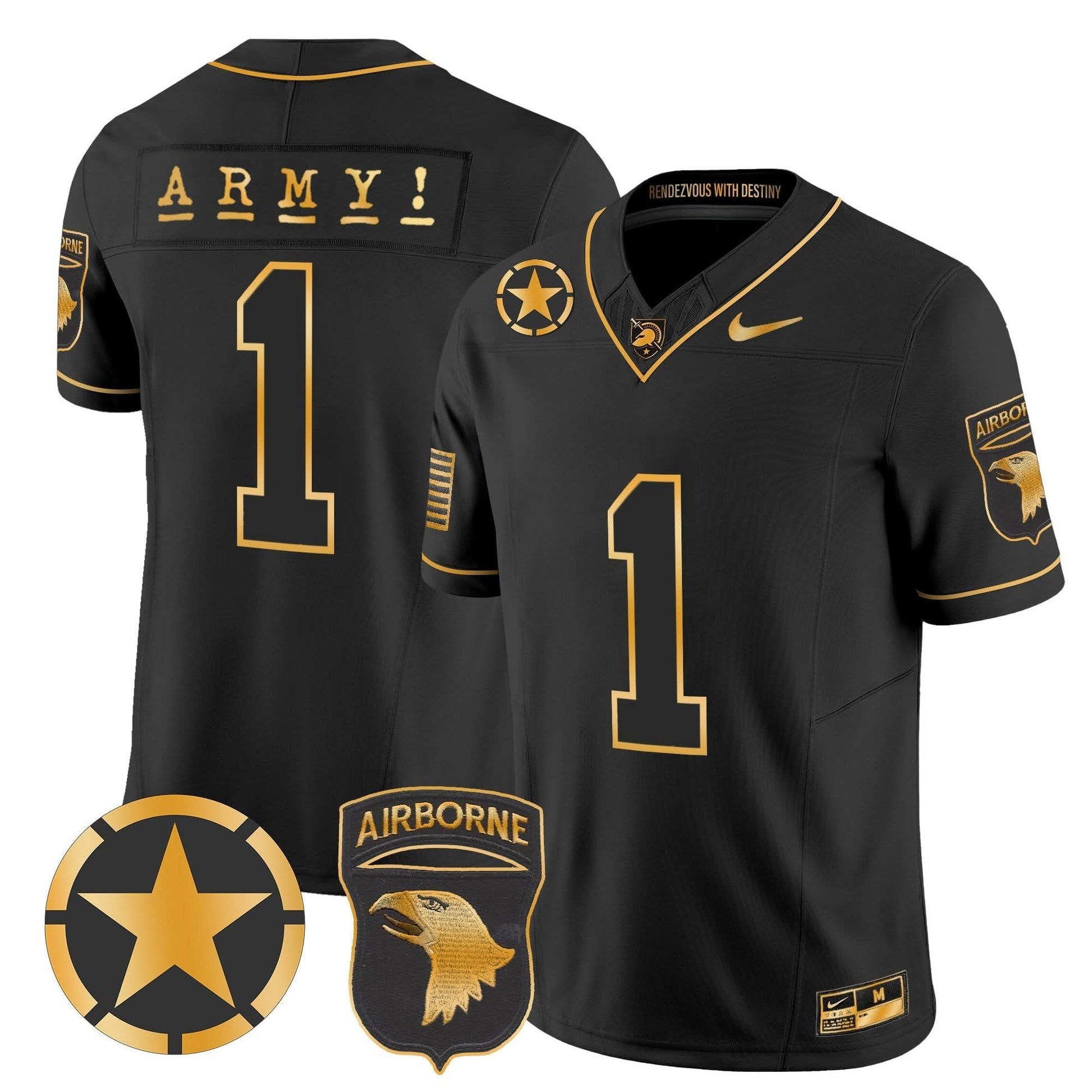 Army Black Knights 101st Airborne Division Patch 2024 Gold Vapor Limited Jersey - All Stitched