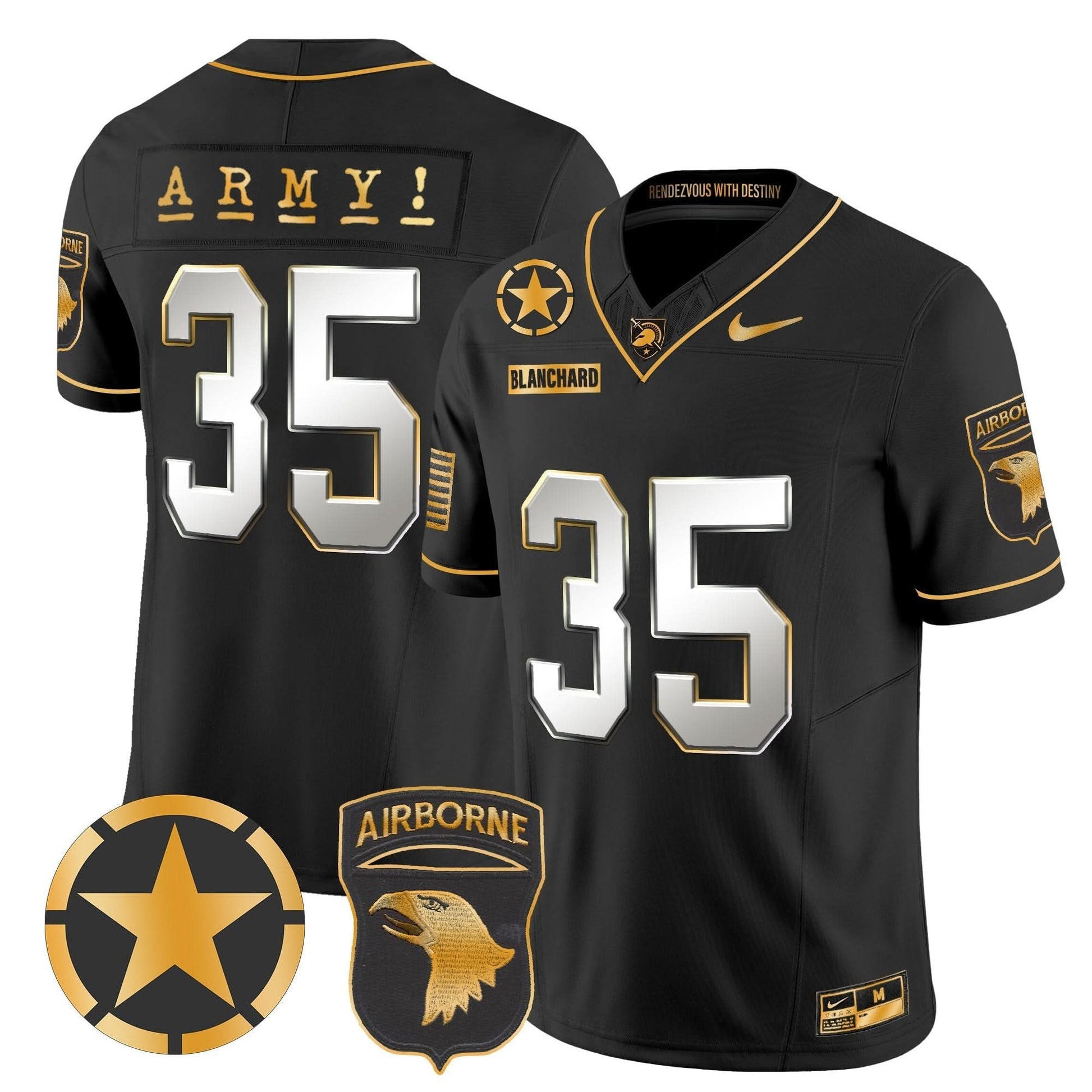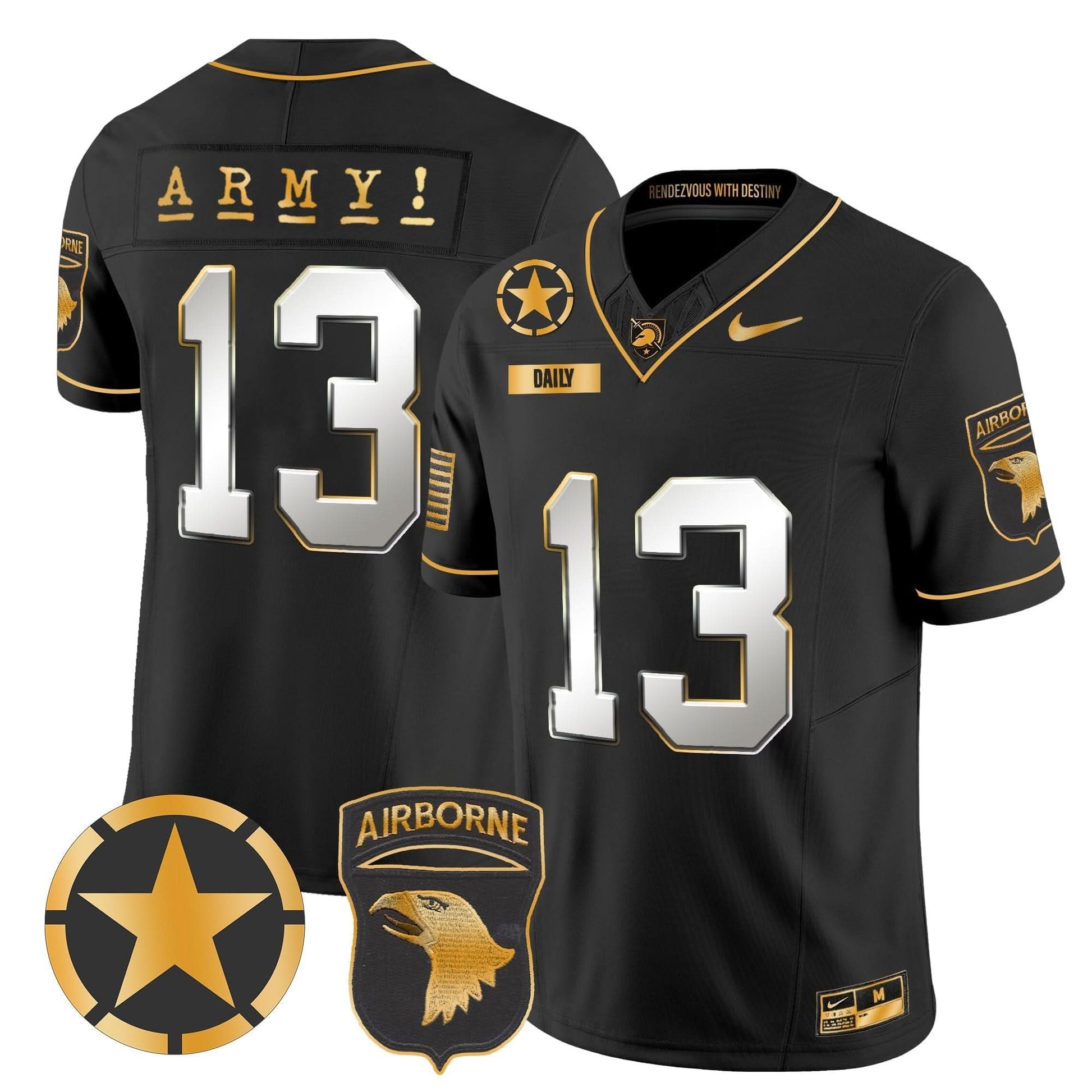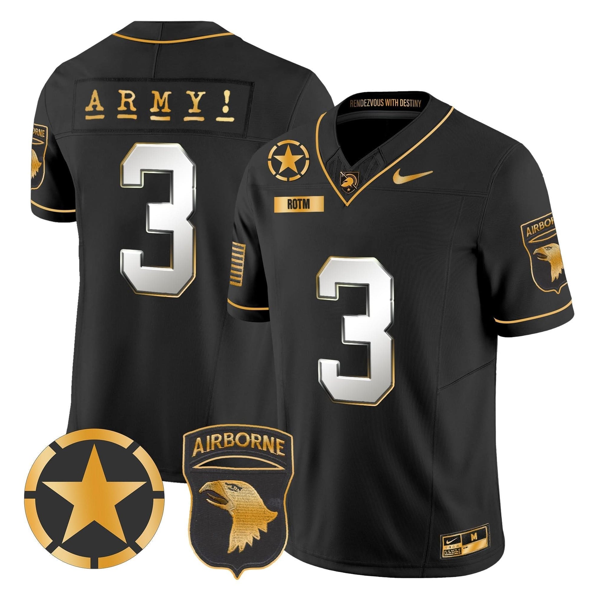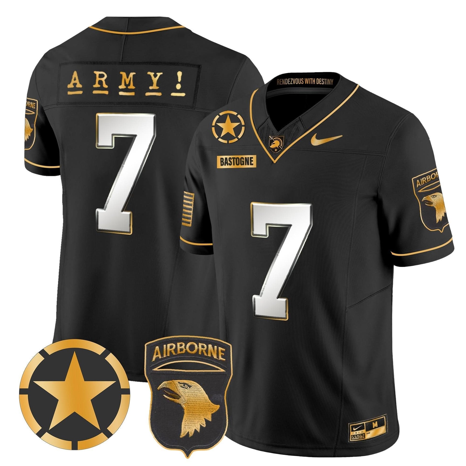 Army Black Knights 101st Airborne Division Patch 2024 Gold Vapor Limited Jersey - All Stitched