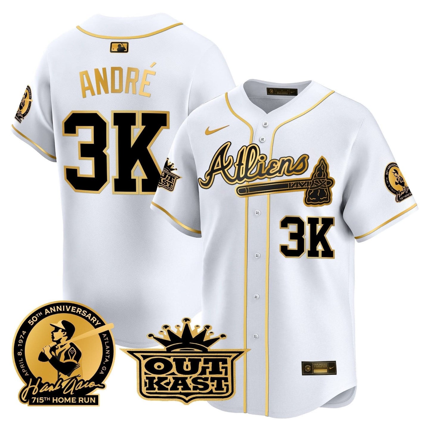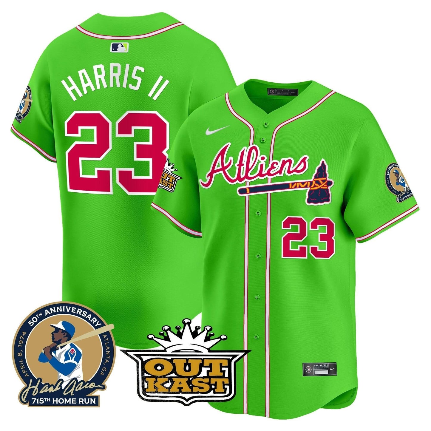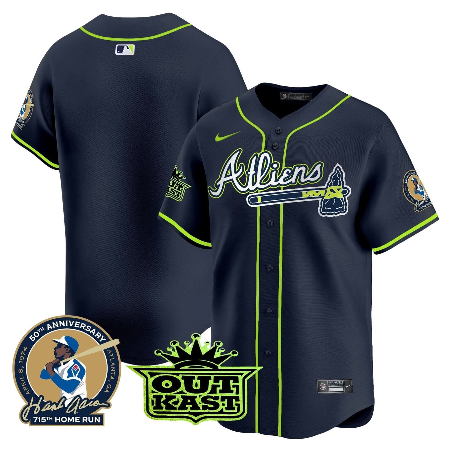 Atlanta Braves Atliens & Hank Aaron Patch Vapor Premier Limited Jersey - All Stitched