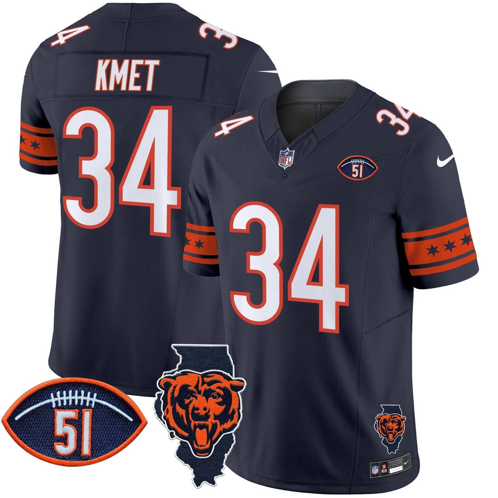 Bears Illinois & Dick Butkus Patch Vapor Limited Jersey - All Stitched
